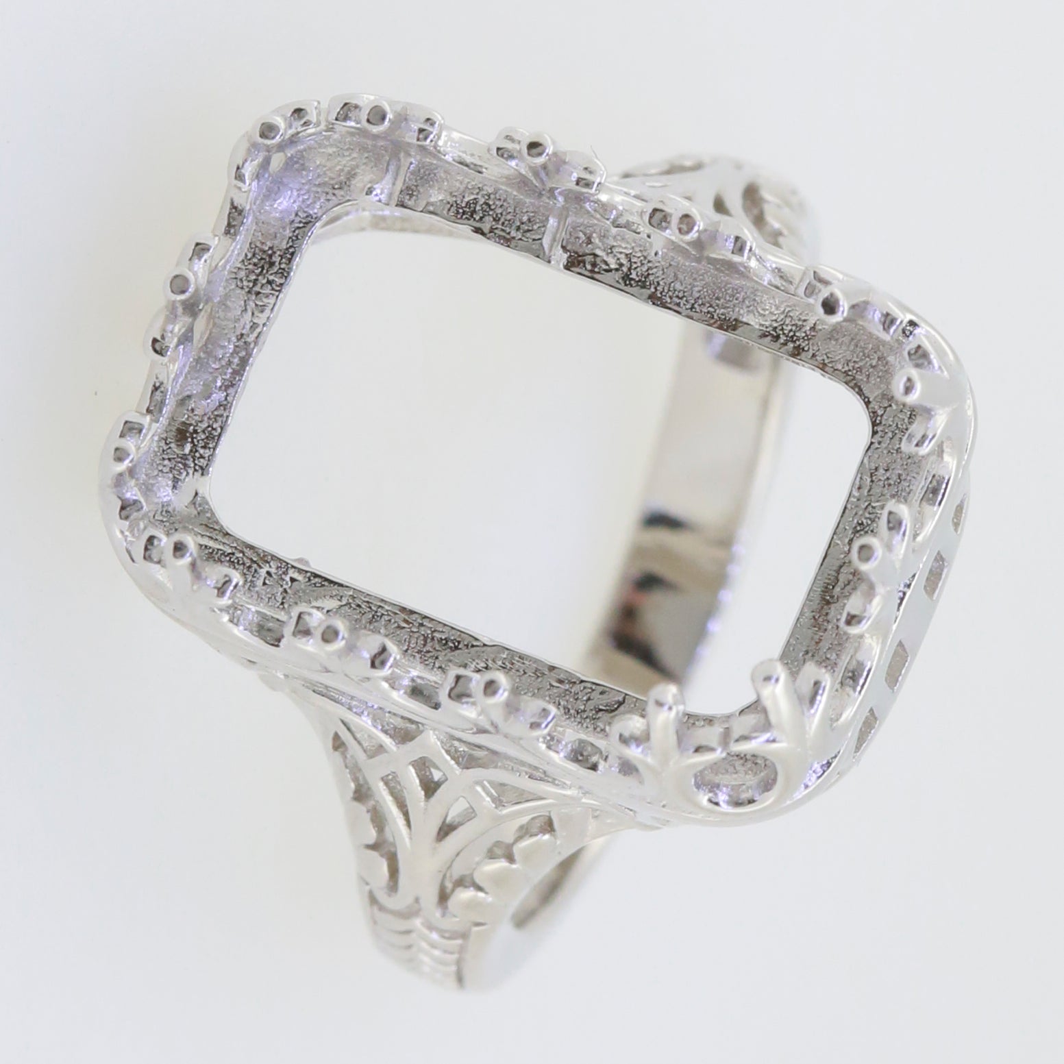 Sterling Silver Semi Mount Ring Setting Emerald OCT 18x12mm Art Deco Style