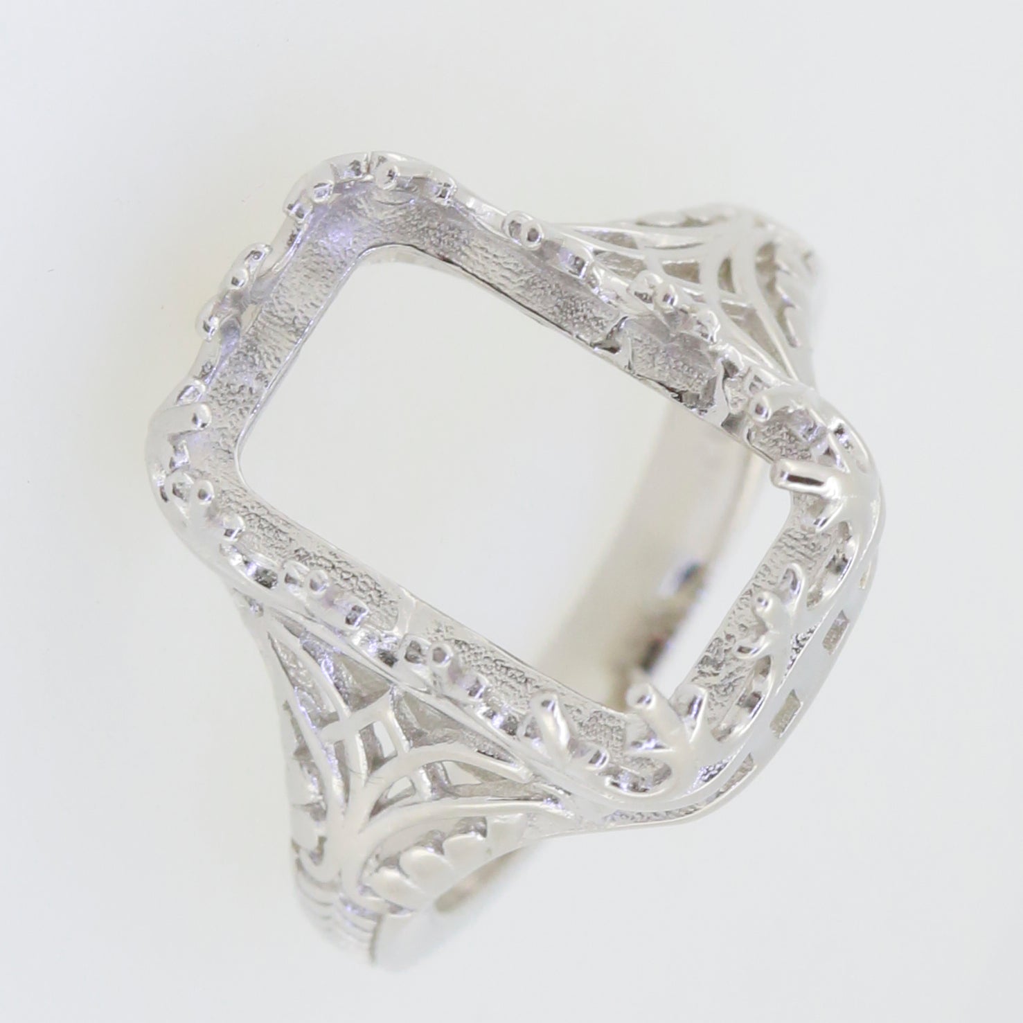 Sterling Silver Semi Mount Ring Setting Emerald OCT 16x10mm Art Deco Style