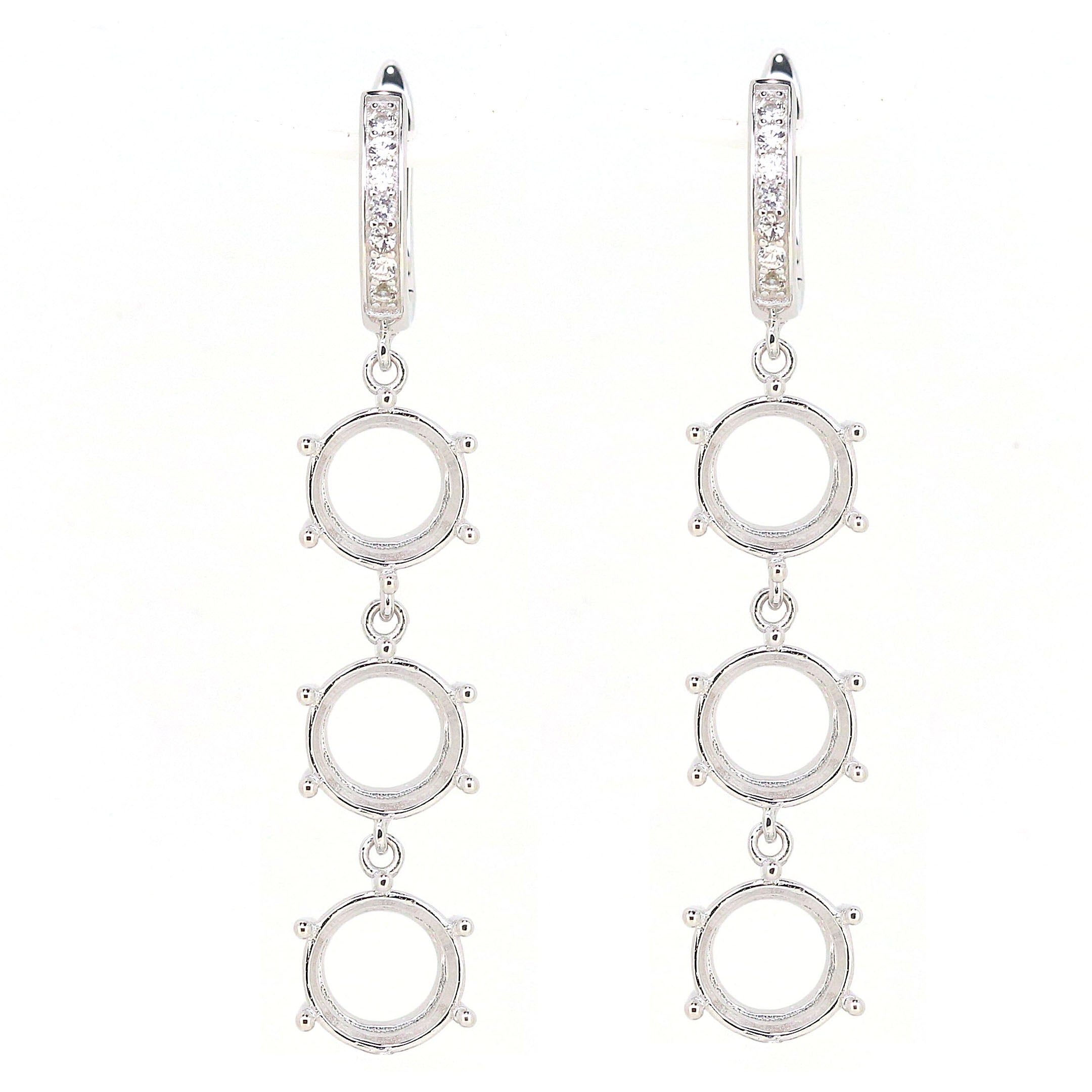 Sterling Silver Semi Mount Earrings Setting Round RD 5x5mm Dangle French Clip