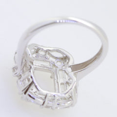 Sterling Silver Semi Mount Ring Setting Emerald OCT 9X7mm Baguette & Marquise Double Halo