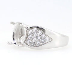 Sterling silver semi mount ring setting with oval 10x8mm center and white topaz gemstones on the sides.