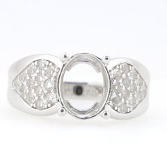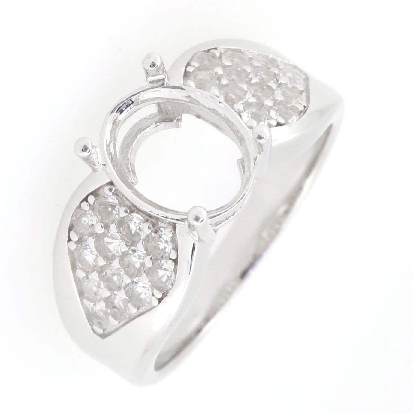 Sterling Silver Semi Mount Ring Setting for Oval 10x8mm with White Topaz Gemstones, ideal for custom sizes.
