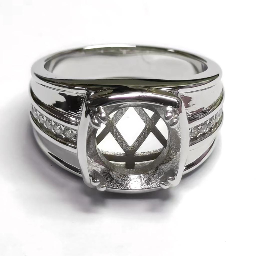 Custom men's sterling silver semi mount ring setting, round RD 8x8mm, showcasing intricate design.